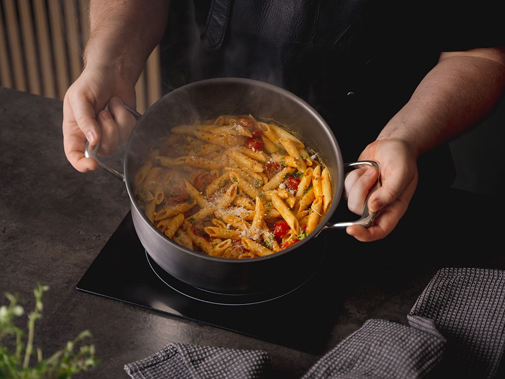 Que vous fassiez rôtir, finissiez un plat sous le gril ou cuisiniez des repas nécessitant un four chaud, la série ZERO assure que vous pouvez l'utiliser à la température souhaitée. Il suffit d'ajuster la température du four à celle que vous utilisez normalement, et les casseroles et poêles ZERO s'occuperont de tout.
