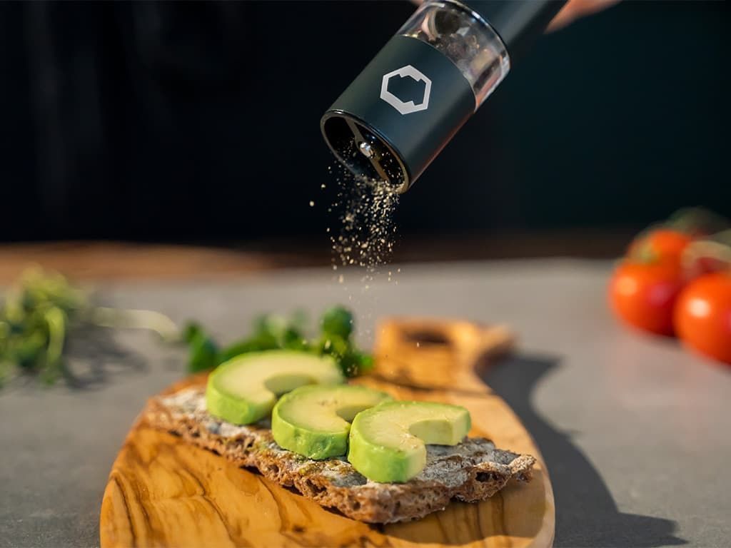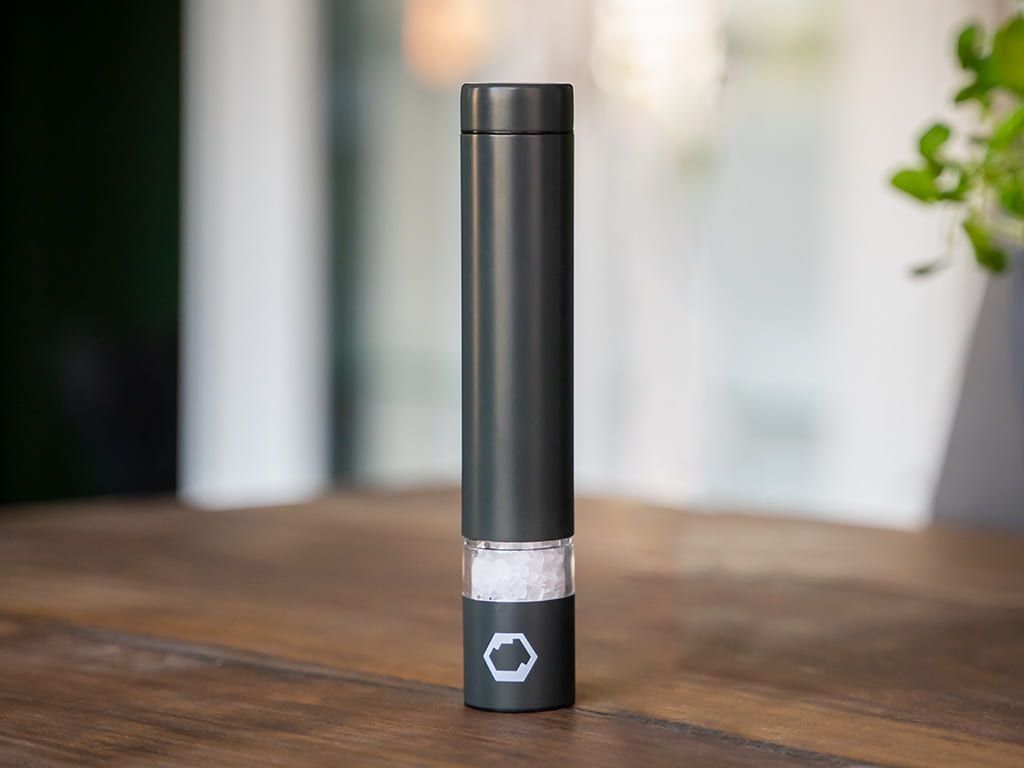 Voici le MOULIN ÉLECTRIQUE ONYXCOOKWARE, un moulin à sel et à poivre innovant conçu pour un assaisonnement maximal avec un minimum d'effort. D'une simple pression sur un bouton, ce moulin électrique fournit du sel et du poivre frais à la perfection en quelques secondes, ce qui rend l'assaisonnement de vos repas plus facile et plus pratique que jamais.