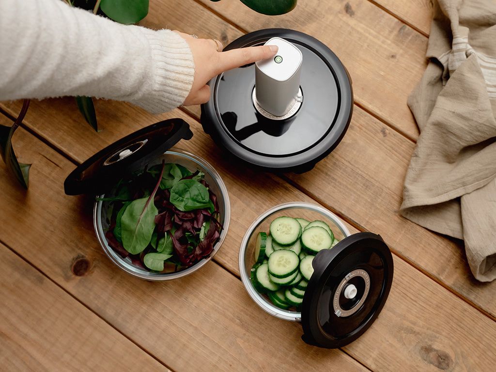 En gardant cela à l’esprit, la conservation sous vide innovant ONYX COOKWARE™ pourrait être le moyen le plus efficace et le plus malin de conserver la fraîcheur de vos aliments. Évitez le gaspillage alimentaire en gardant les aliments frais jusqu'à cinq fois plus longtemps par rapport aux autres méthodes de stockage, tout en ne perdant aucun des minéraux, vitamines et nutriments essentiels qui sont préservés dans les aliments. Difficile de faire plus futé !