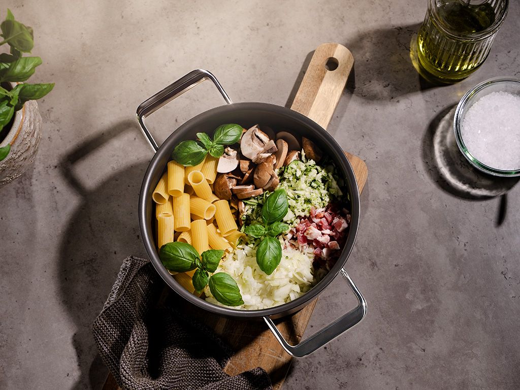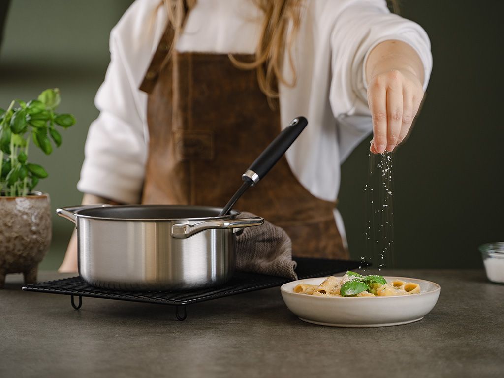 Que vous fassiez rôtir, finissiez un plat sous le gril ou cuisiniez des repas nécessitant un four chaud, la série ZERO assure que vous pouvez l'utiliser à la température souhaitée. Il suffit d'ajuster la température du four à celle que vous utilisez normalement, et les casseroles et poêles ZERO s'occuperont de tout.