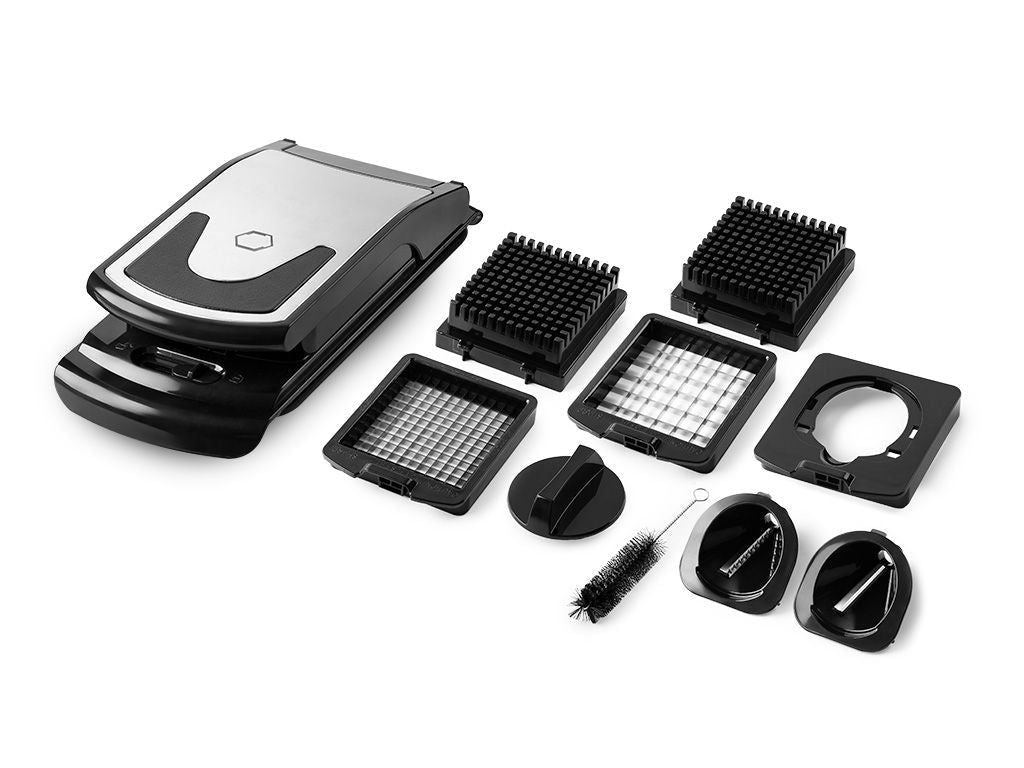 • Quatre lames de précision pour couper en dés, hacher et spiraliser