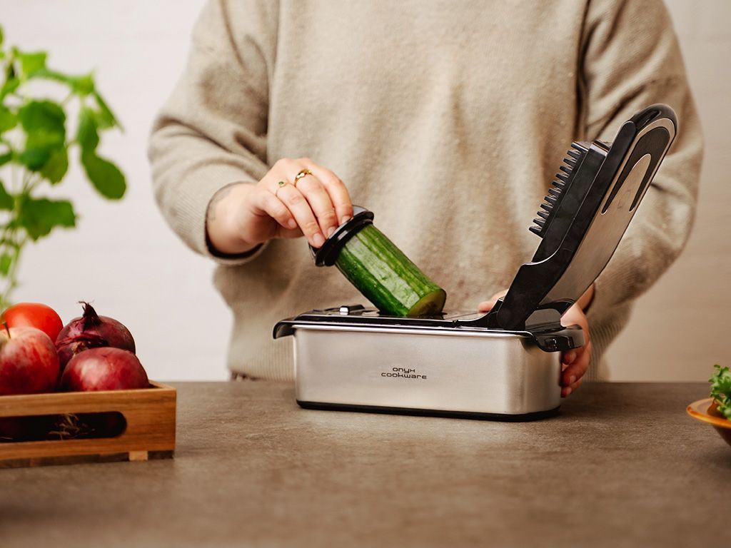 Fabriqué en acier inoxydable 100 %, ce hachoir allie robustesse et design moderne. Le système de verrouillage sécurisé maintient les lames bien en place pendant l'utilisation, pour une tranquillité d'esprit totale. Et une fois terminé, le nettoyage est simple grâce aux composants compatibles lave-vaisselle. Que vous coupiez, hachiez ou spiralisez, cet outil tout-en-un vous fait gagner du temps et facilite la préparation des repas.