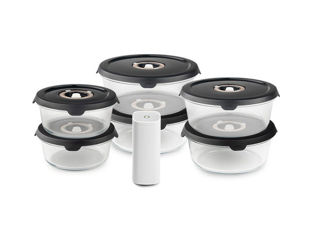 Le récipient sous vide conserve vos aliments jusqu'à cinq fois plus longtemps. Utilisez la pompe à vide pour créer un vide, et en quelques secondes, vous avez des aliments rangés sous vide prêts à être utilisés quand vous en avez besoin. Leur conception astucieuse permet d'empiler les conteneurs les uns sur les autres, créant ainsi plus d'espace dans le réfrigérateur pour vos autres produits. Et le haut du couvercle comporte une horloge manuelle jour et date afin que vous puissiez visualiser facilement la durée de mise sous vide des aliments.